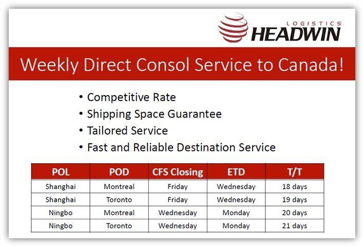We are now offering LCL/Consolidation service from Shanghai/Ningbo (China) to Montreal/Toronto (Canada) weekly!